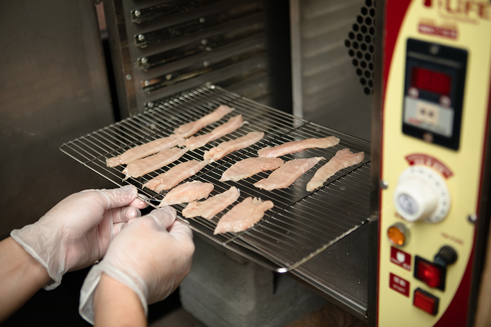 雞胸肉不含多餘脂肪,低脂高蛋白,經過低溫烘培,香脆可口,是減重狗狗的最佳零嘴