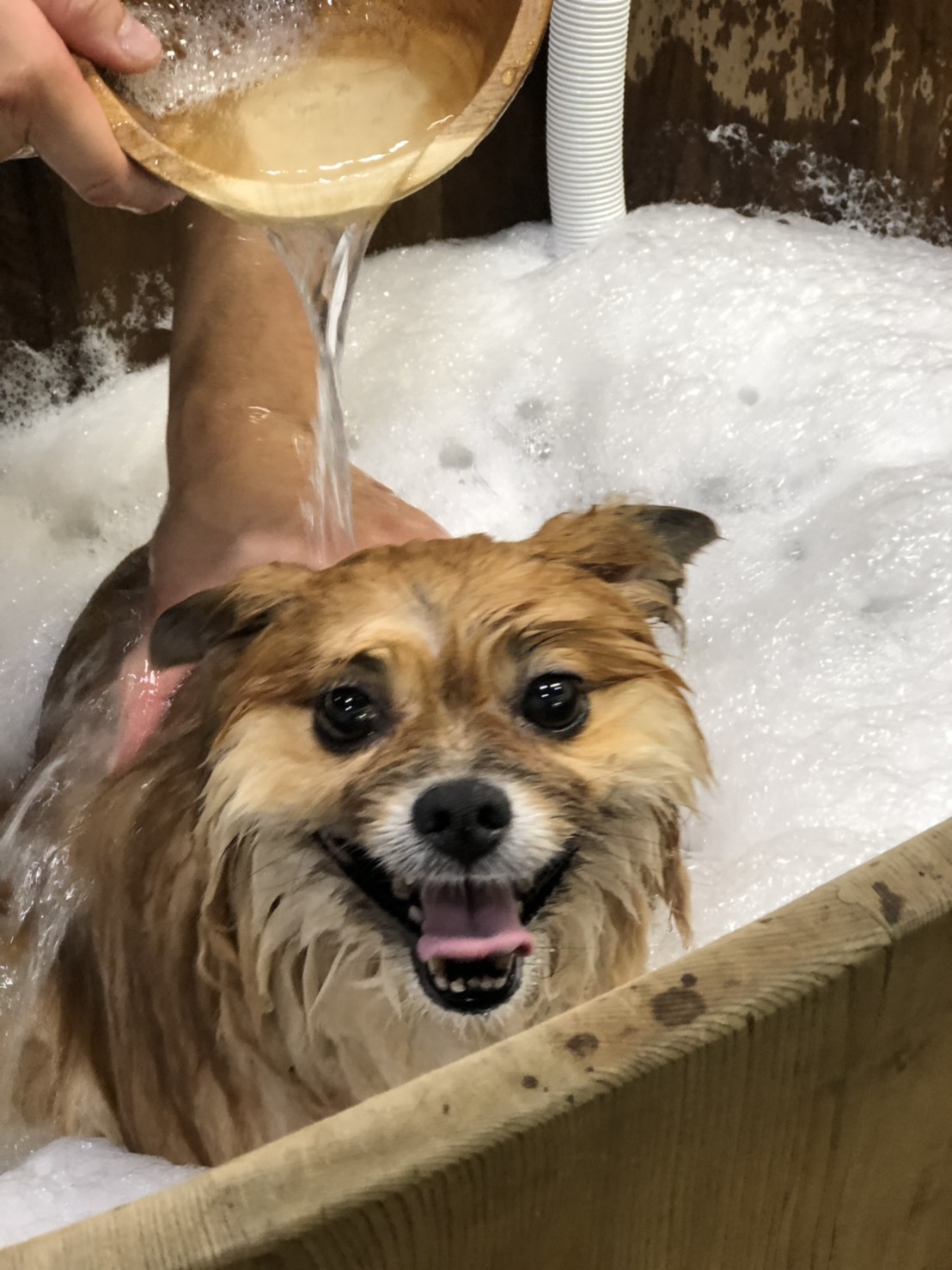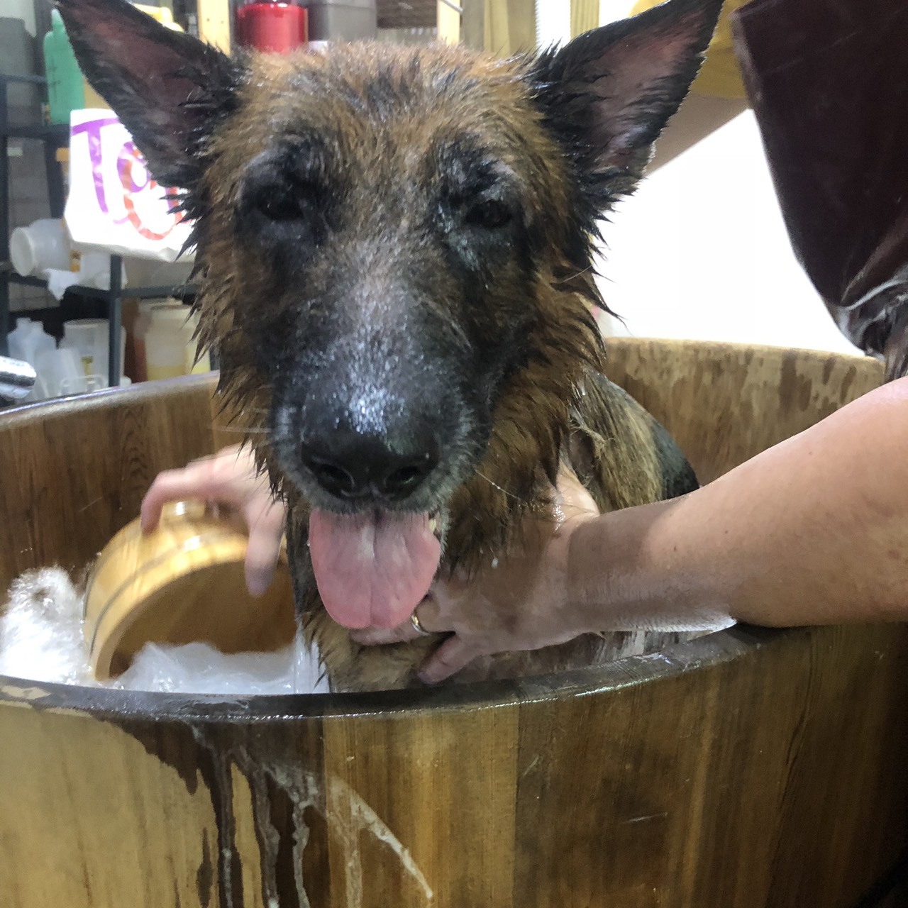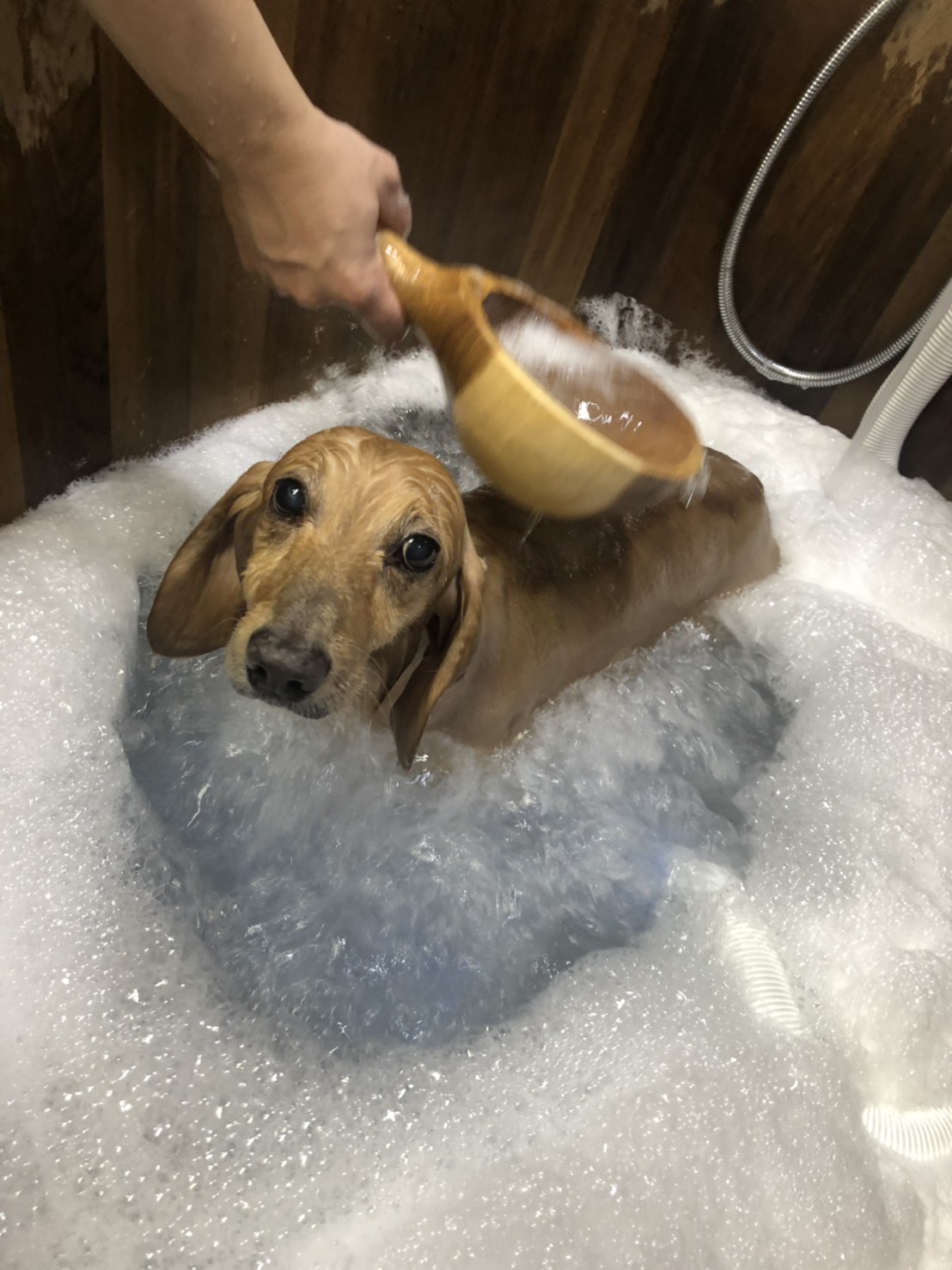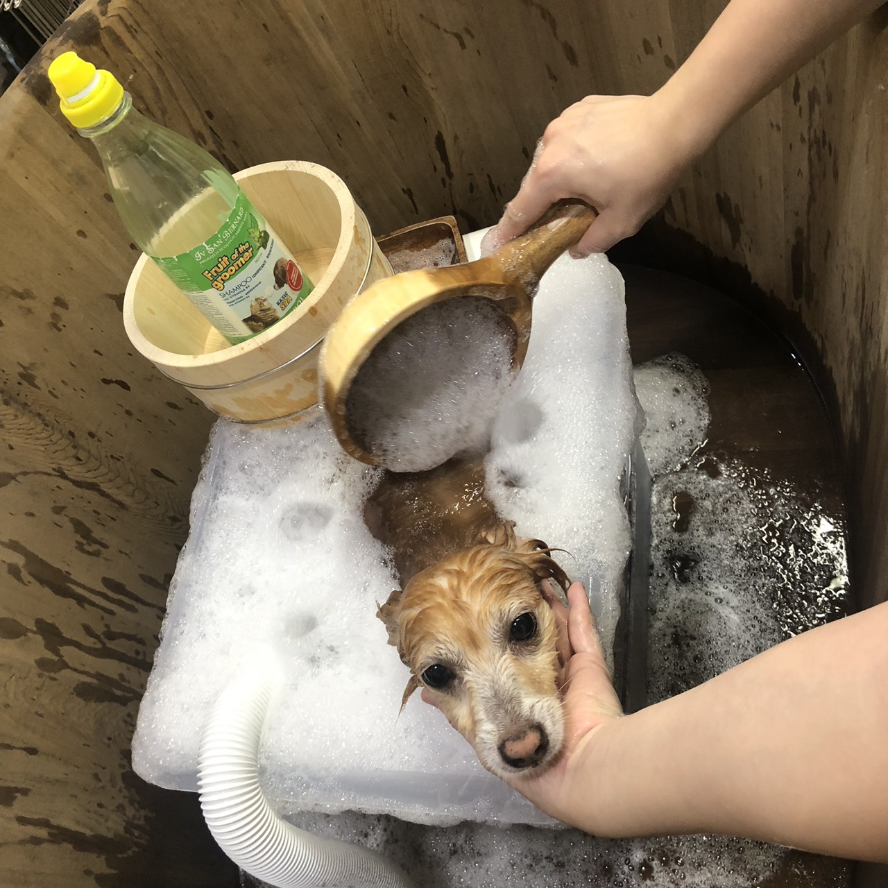 SPA一詞來自古老拉丁語,Solus(健康)Par(在)Aqua(水)意謂:經由水獲得健康的意思,讓毛孩在充滿芬多精的檜木桶裡,來場森林SPA浴,徹底放鬆身心靈吧!