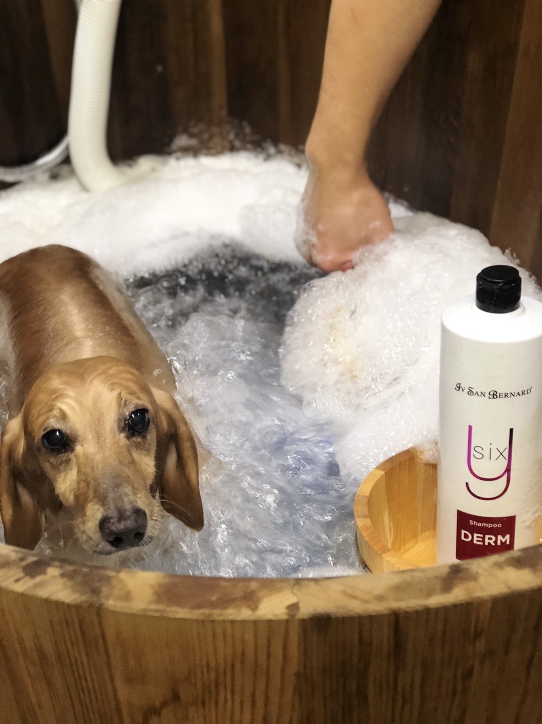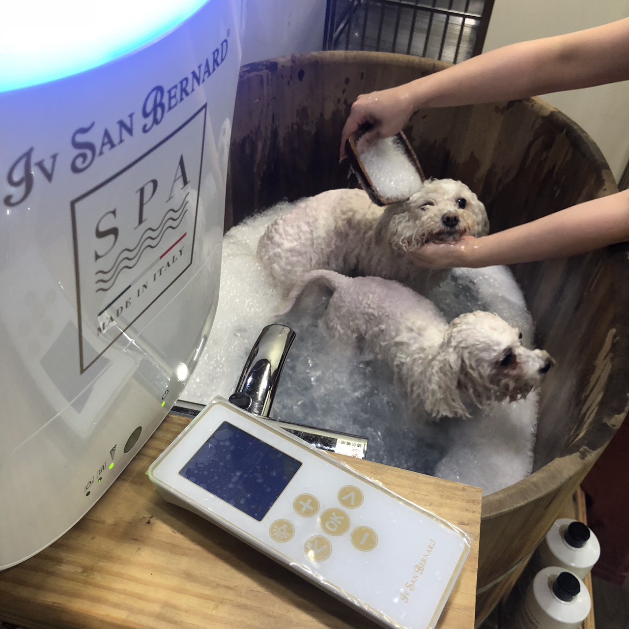 倘佯於天然檜木桶啵啵泡泡浴,來自義大利Iv San Bernrd 艾詩貝原裝進口是一款由獸醫共同研發的水氧SPA機,綿密的氣泡,釋放出抗菌的臭氧,讓狗狗身心、皮毛得到全方位的放鬆,取代以往傳統手技按摩,導入產品加倍吸收。