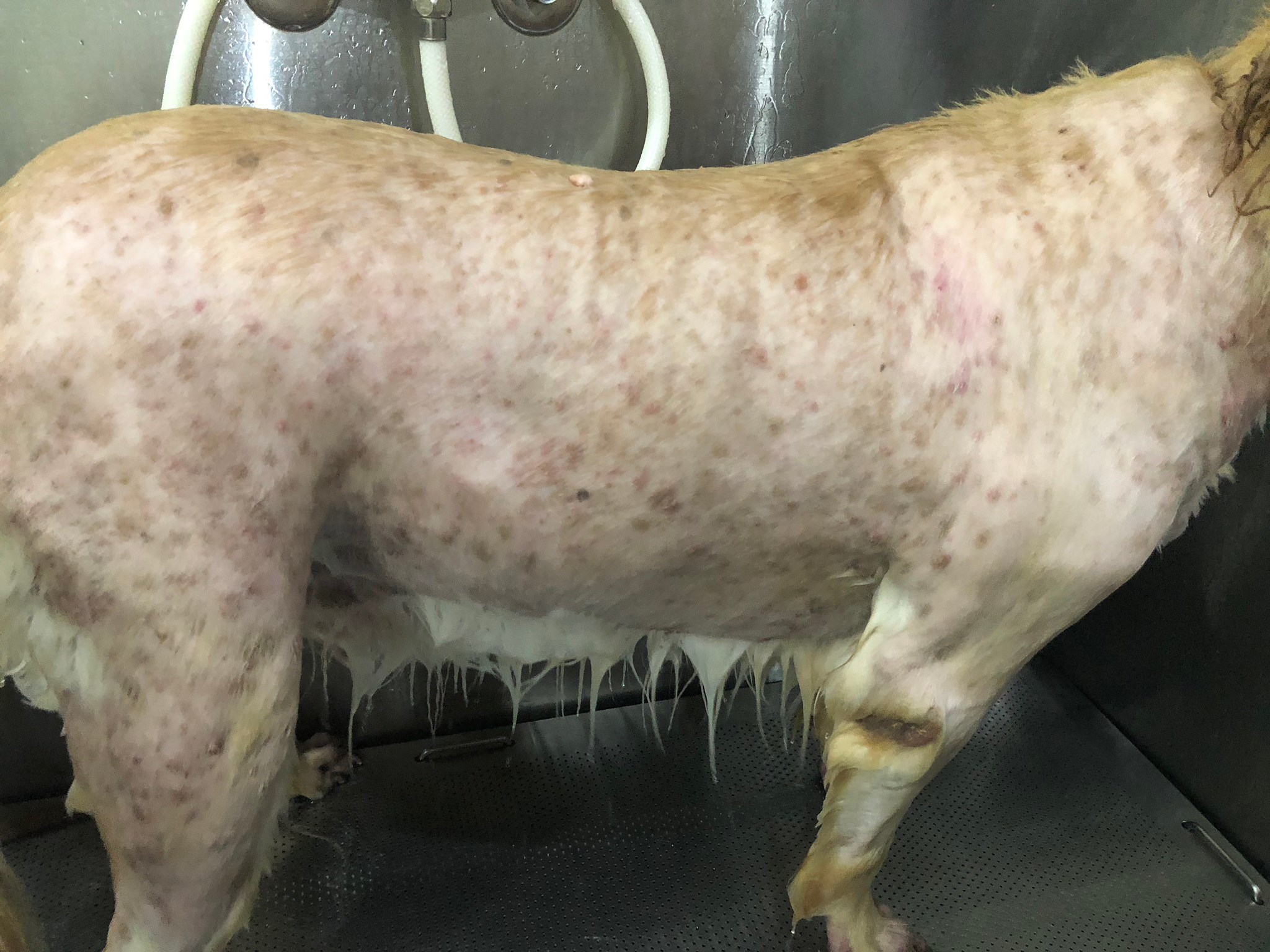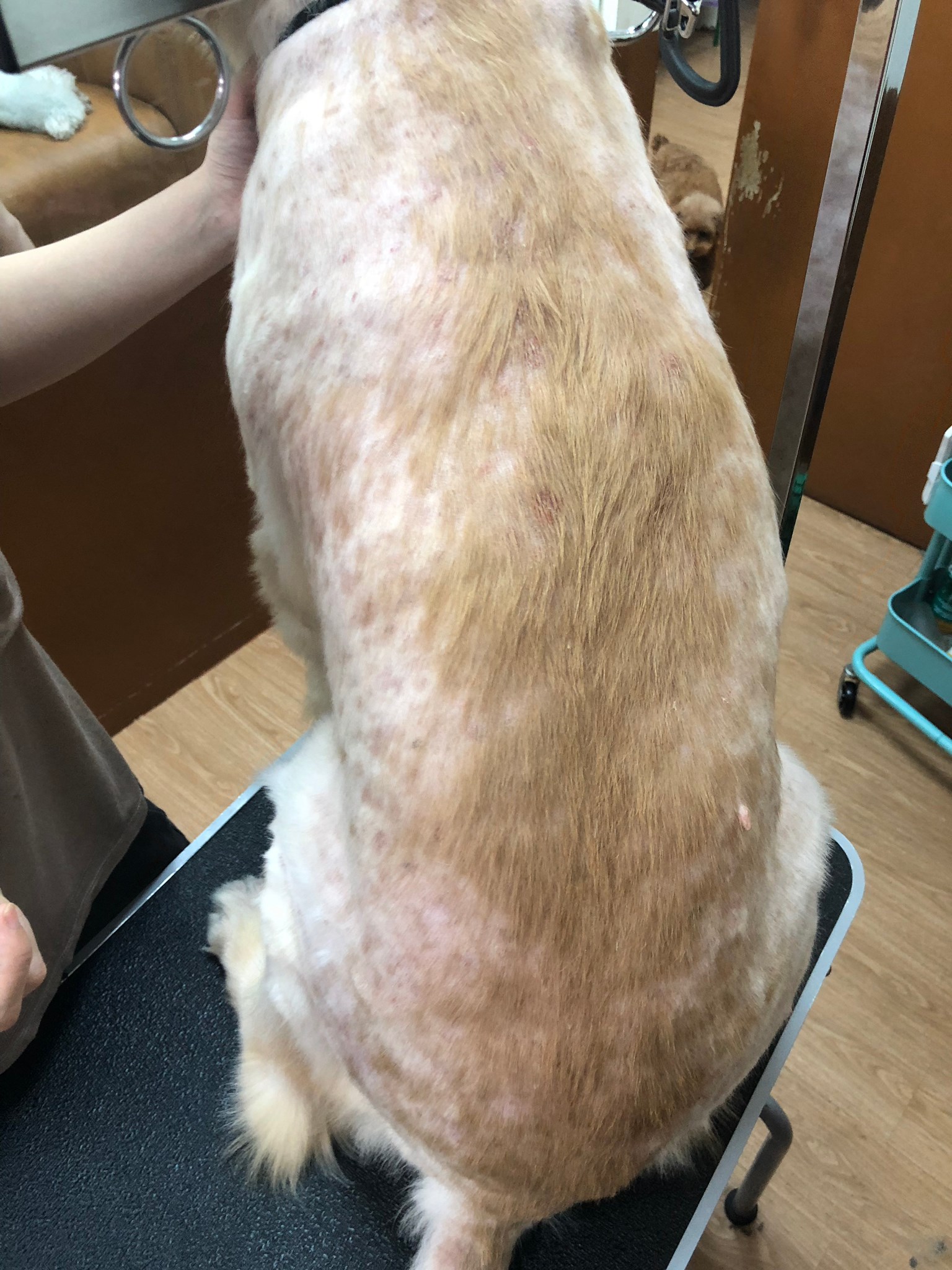 如照片所見,皮膚狀況逐漸恢復,搔癢得到緩解 逐漸恢復健康的皮毛,也長出新毛。